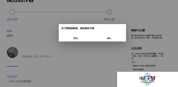5、之后在这里进行手机号的绑定,并在这里进行各种信息的设置,分享自己的创作方案就可以成为创作者了。