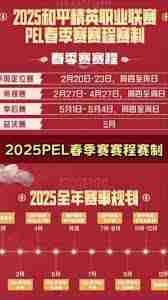 2025 pel春季赛完整赛程:从季前赛到总决赛的巅峰对决!2025 PEL春季赛将于2月20日正式打响,历时三个多月,最终决赛将于5月18日结束。 赛事涵盖季前定位赛、常规赛、季后赛以及最终的总决