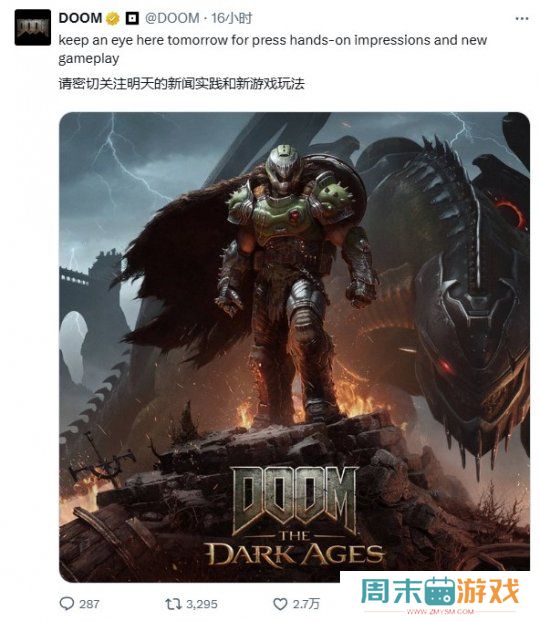 昨日DOOM(毁灭战士)官方账号在X平台上发布了一条新消息,提醒玩家密切关注3月31日的资讯和最新游戏实机演示。