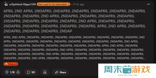 这里讨论的帖子提到了4月2日,届时将举办一场庆祝即将推出的任天堂Switch 2主机的后续直面会。这种期待表现得很隐晦,但我猜他们把希望寄托在了这次直面会上——从他们像囚犯在无情的石墙上划刻一样,不断对自己念叨“4月2日 4月2日 4月2日 4月2日”的方式就能看出来。