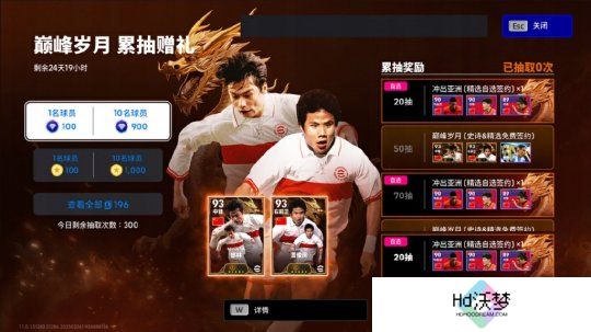 完成任务后,【巅峰岁月 累抽赠礼】前两档【冲出亚洲 精选自选签约】和【巅峰岁月 免费签约(10%含中国传奇)】将可以免费解锁,必定获得中国队精选球星!大大提高玩家们中国队套的强度!