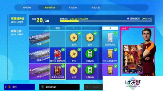 S3赛季通行证现已上线!完成比赛即可在通行证中获得【金币】、【位置训练】等道具奖励。使用实况点卡解锁豪华版通行证还可以获得精选格纳布里,以及增能梦幻精选 迪巴拉、克里斯蒂亚诺·罗纳尔多和卡拉菲奥里三选一的签约机会!想要补强球队的玩家们千万别错过啦!