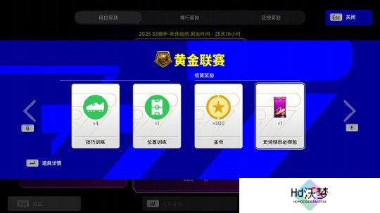 新赛季天梯冲分福利更新!轻松获得史诗球员的机会来啦!S3赛季天梯赛不仅可以获得【金币】、【位置训练】、【技巧训练】,只要冲上黄金联赛,即可获得【史诗球员必得包】;
