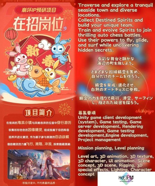 此前米哈游招聘公告中提及《崩坏因缘精灵》介绍:在悠闲的海边小镇与风格各异的位面中穿行游历。收集形形**的因缘精灵,组成独属于你的阵容。培养并进化精灵,作为棋子参与刺激的自动战棋。借助精灵的力量飞行、滑翔、冲浪,探索隐藏奥秘!